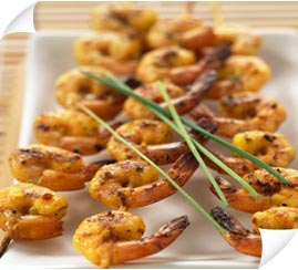Dans une assiette creuse, mélangez l’huile d’olive l’ail, poivrez et ajoutez les crevettes .