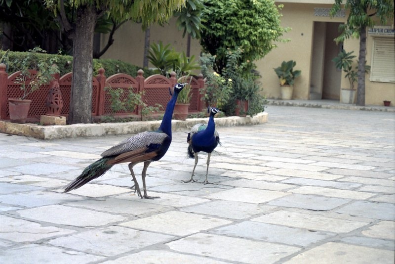 Les paons sont les hôtes de la cour de notre hôtel.