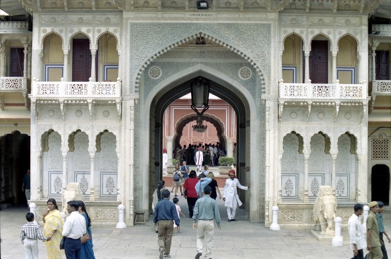 City Palace est un lieu incontournable à Jaipur ( photo 5-9) Les bâtiments du palace occupe deux des neufs quartier de la ville du XVIIIe siècle. Aujourd’hui une partie est occupé par l’administration de l’état du Rajasthan, une autre abrite toujours les appartements du maharajas, une troisième est ouverte à la visite..