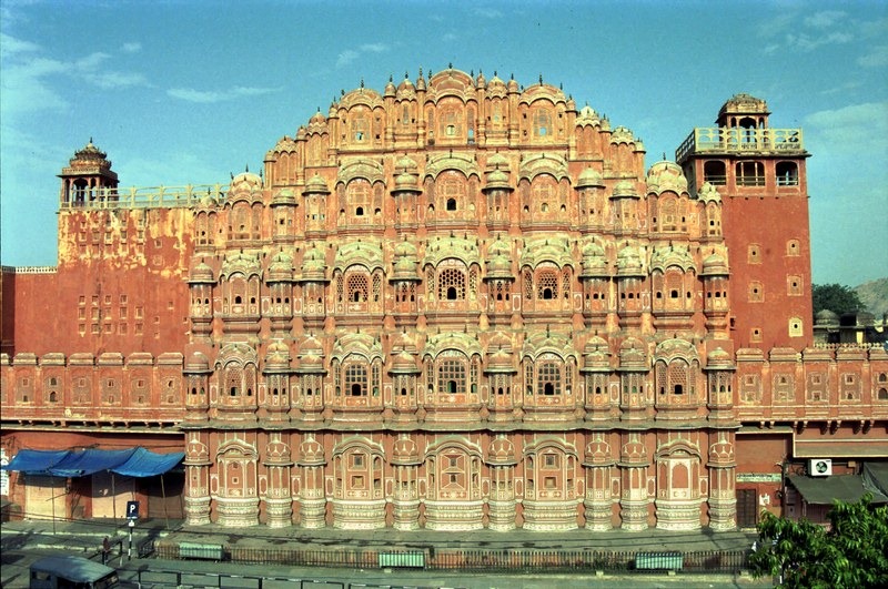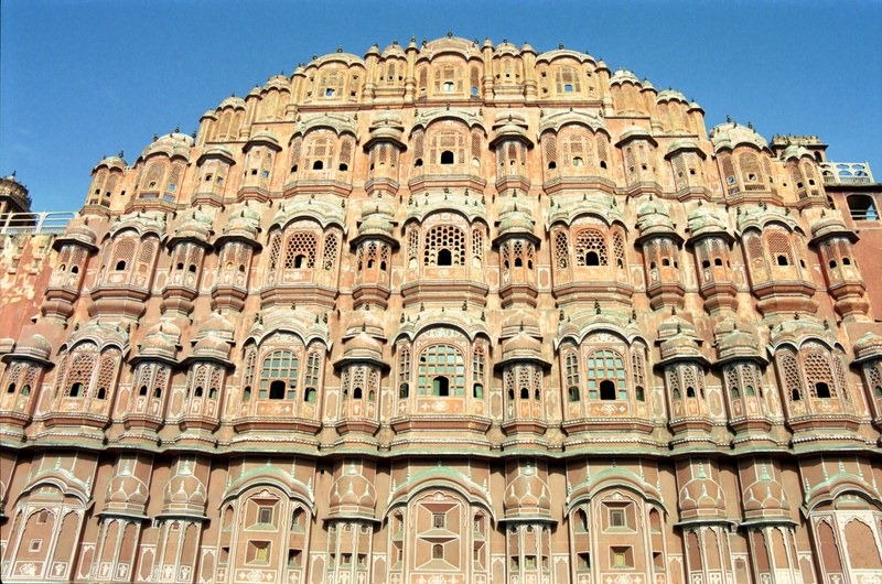 Le monument le plus célèbre de Jaipur est sans conteste le Palais des vents ( Hawa Mahal). Construit en 1799 , à chacun de ses cinq étages, de petites ouvertures en forme d’alvéoles permettaient de contempler le spectacle de la rue et des manifestations publiques à l’abri des regards indiscrets.