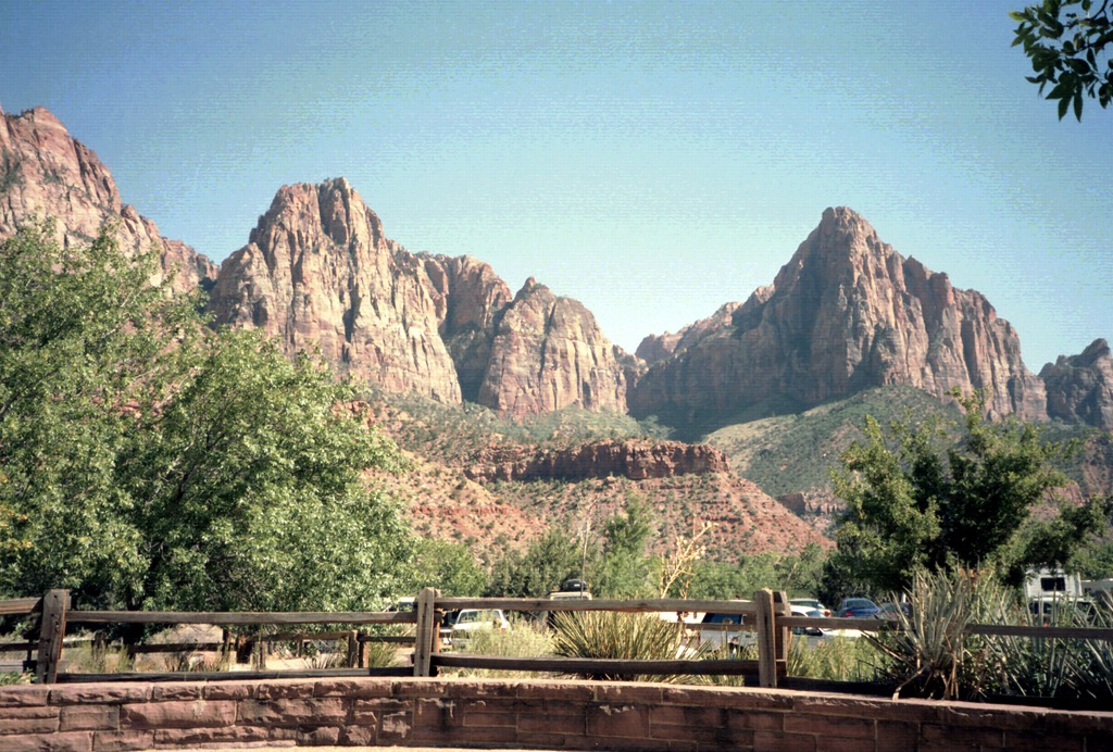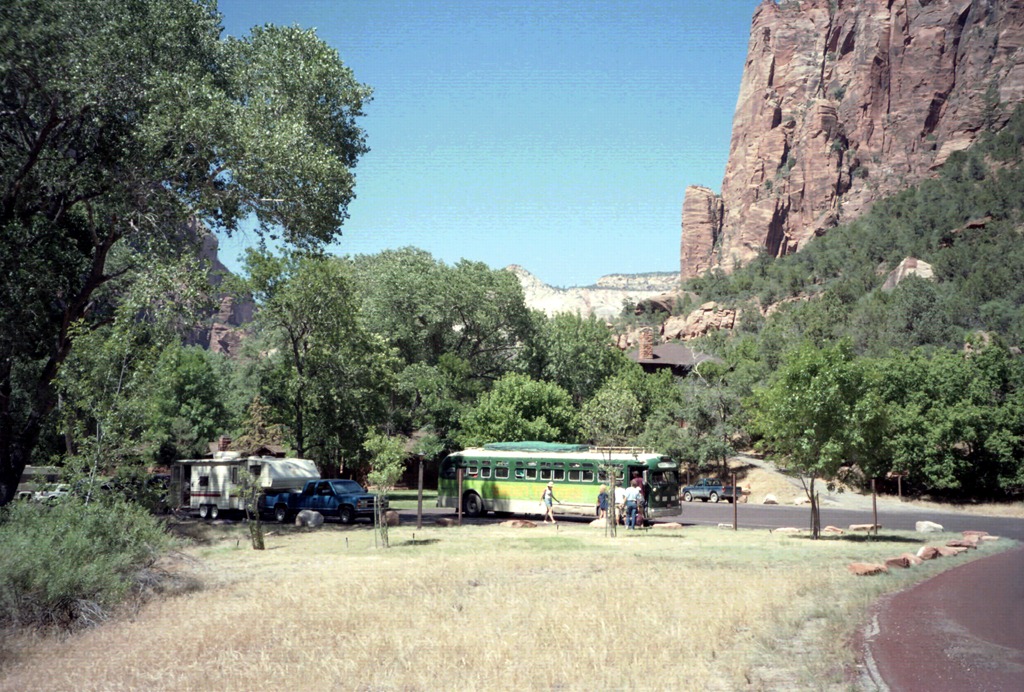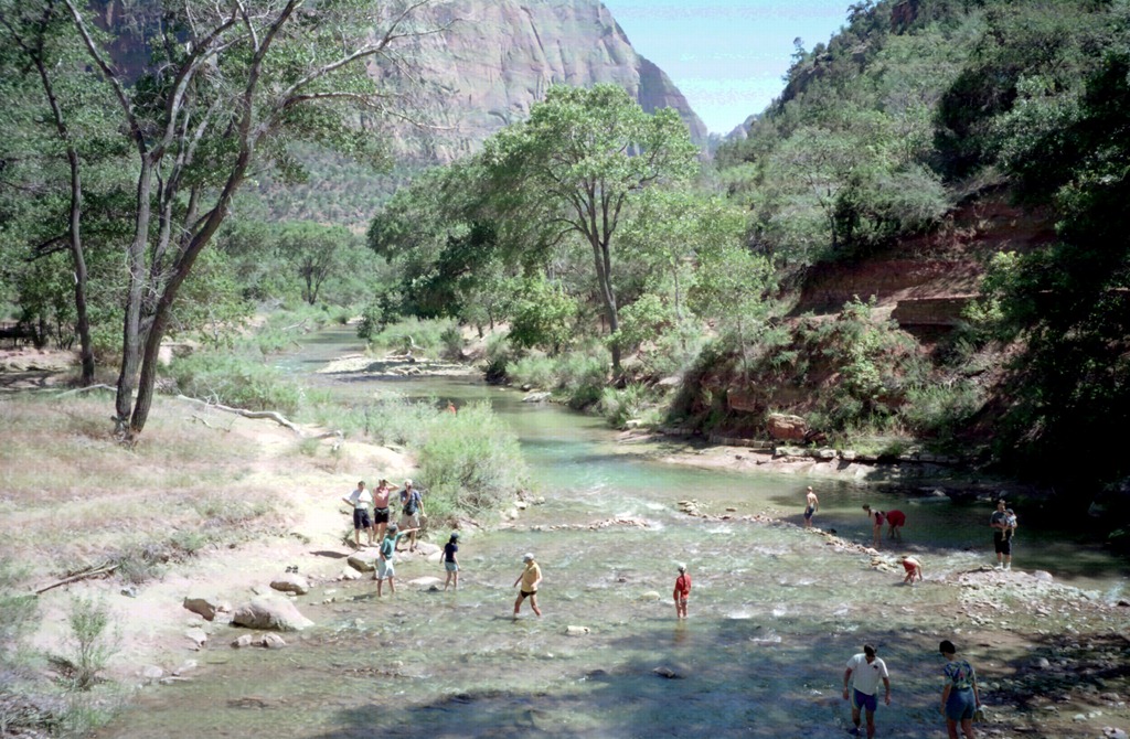 Après notre parenthèse citadine de Las Vegas, notre bus nous dépose au de Parc de Zion, enfin de la verdure et de l’eau après la traversée de la vallée de la mort.