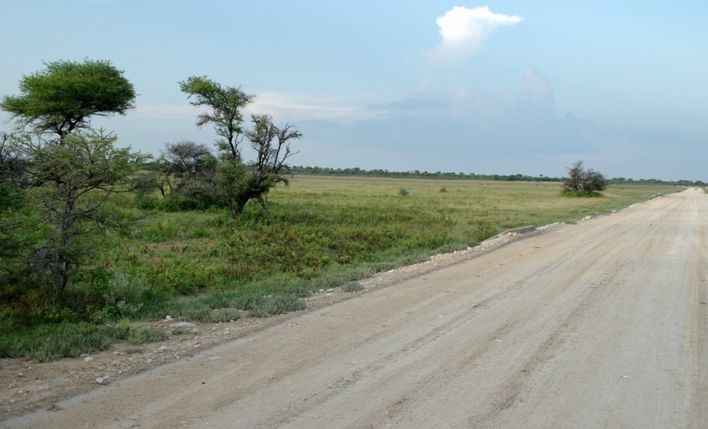 C’est en fin d’après-midi que nous arrivons à nôtre hôtel qui se situe à l’entrée du Parc National d’Etosha. C’est la plus grande réserve animalière d’Afrique, elle s’étend autour de l’ancien lac salé d’Etosha, le “Pan” qui ne retient désormais l’eau qu’à la saison des pluies , qui viens juste de se terminer avec une pluviométrie exceptionnelle.