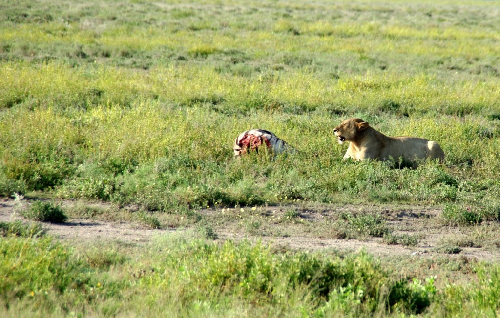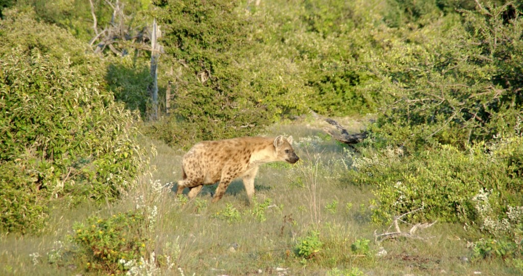 Mesdames et Messieurs ce matin encore un grand spectacle sous vos yeux ébahis…Par ordre d’apparition Lionne au petit déjeuner, Hyène faisant un passage furtif entre deux buissons , chacals guettant le “petit-déjeuner” de la lionne , rhinocéros noir pendant sa thalasso du matin puis traversant la route pour la suite de son programme “forme”…
