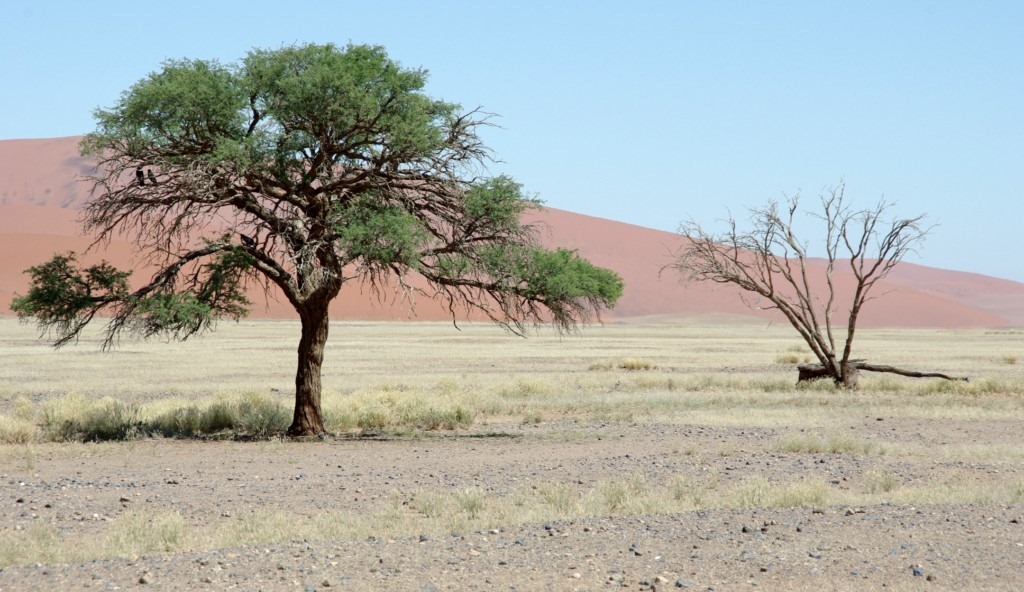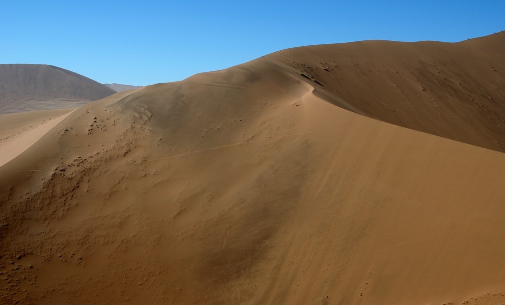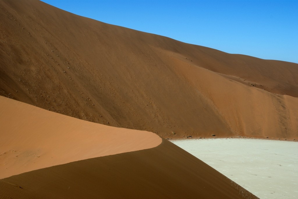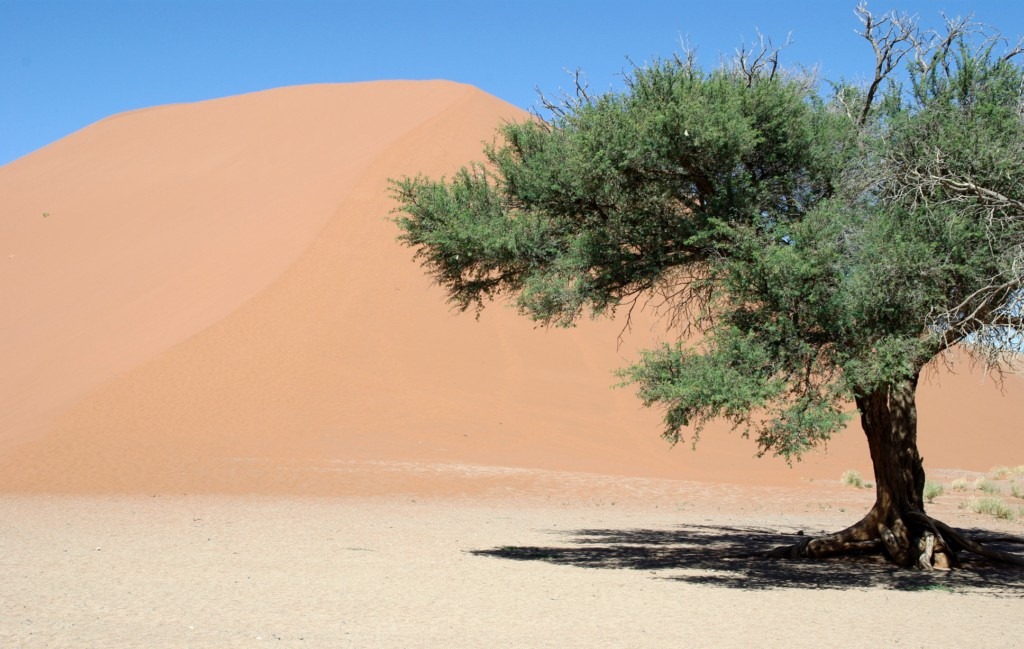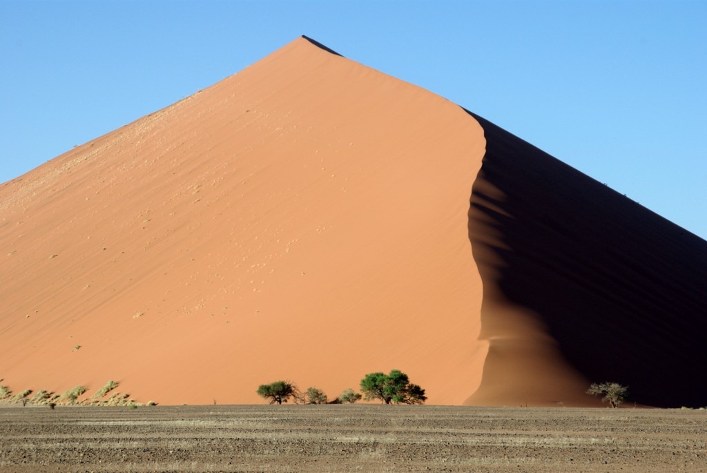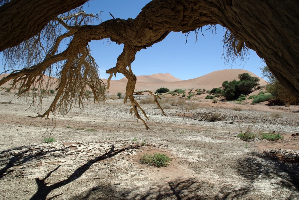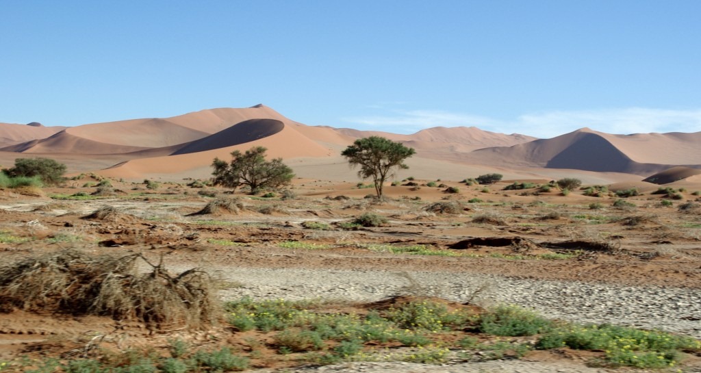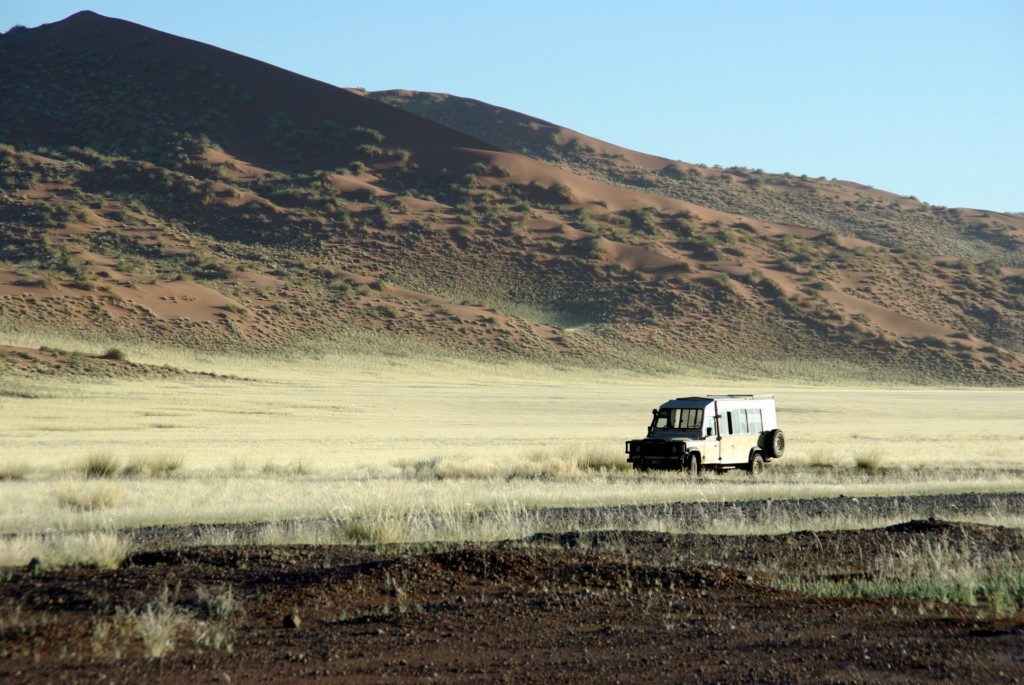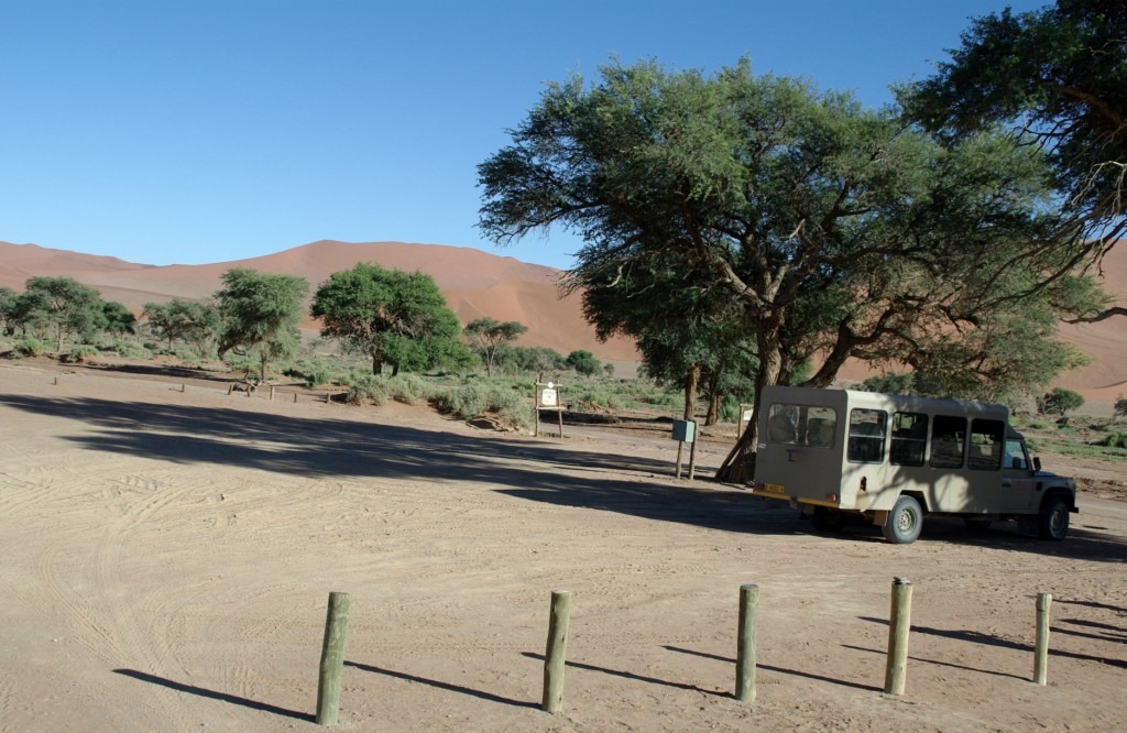 C’est donc en pleine nuit que nous quittons Solitaire pour le désert du Nanib et plus précisément Sossusvlei. Cette partie du désert faisait partie jusqu’en 1977 de la zone diamantifère interdite.. Heureusement avec le tarissement des gisements la zone est accessible au public qui peux observer les plus hautes dunes de sables au monde (300 m pour certaines)