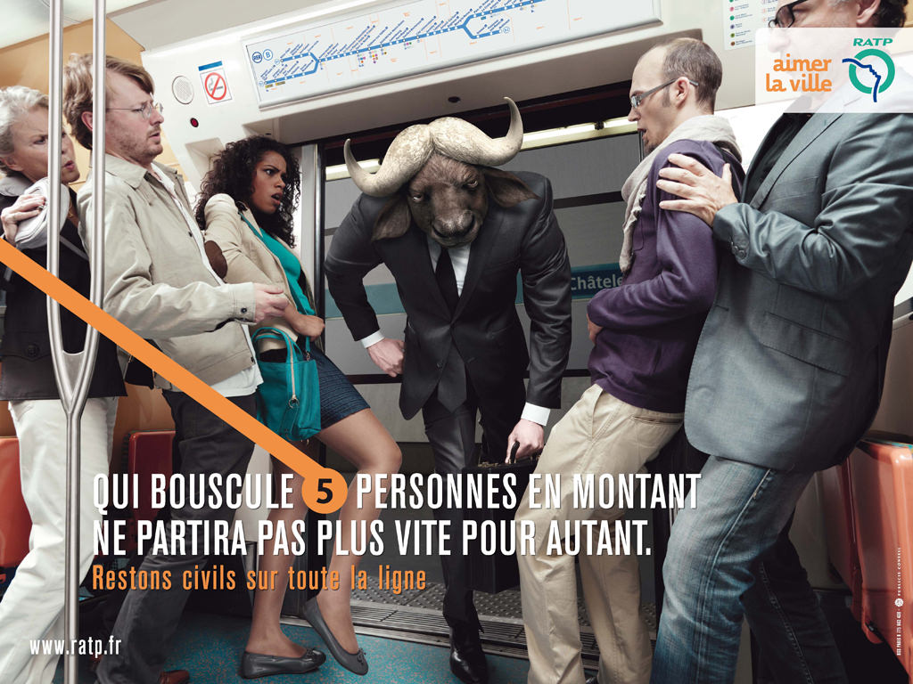 La RATP lance donc pour cette rentrée une grande campagne pour rester civils. Même si je doute de l’efficacité , les affiches reproduisent avec humour parfaitement les petits tracas que nous rencontrons tous au quotidien ou presque.