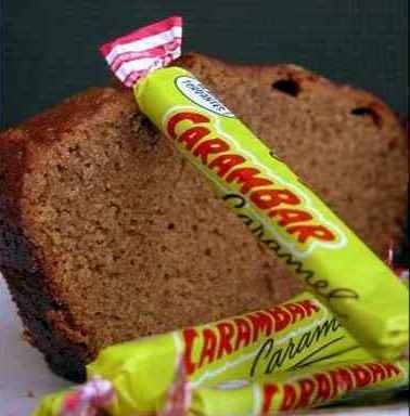 Ingrédients pour 6 personnes : 180 g de farine – 20 carambar – 3 oeufs – 130 g de sucre – 150 g de beurre + 10 g pour le beurre -1 sachet de levure chimique – 10 cl de lait.
