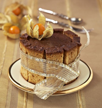 Démoulez la charlotte, décorez le dessus avec les demi-poires réservées.
