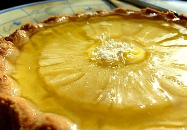 Préchauffez le four à th. 6-7 (200 °C). Abaissez la pâte et garnissez-en un moule beurré. Piquez-la et garnissez-la de la crème à l’ananas, disposez les tranches d’ananas caramélisées et enfournez pour 45 min. Servez tiède ou froid.
