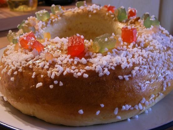 Aujourd’hui c’est le gâteau des rois ou couronne des rois qui est à l’honneur, c’est l’équivalent de la galette mais dans le sud de la France…ici pas de pâte feuilletée ni de frangipane mais une brioche au fruits confits, délicieux tiède…c’est le gâteau de mon enfance.