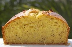 Ingrédients pour 6 personnes : 250 g de farine – 3 oeufs – 60 g de beurre – 50 g de sucre – 120 g de miel liquide – 2 citrons bio – 2 cuil. à soupe de graines de pavot – 1/2 sachet de levure chimique – 1/2 cuil. à café de bicarbonate de soude – 1 petite poignée de thym frais.