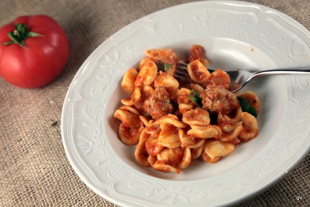 Orechiette (« petite oreilles » en italien) désigne une variété de pâtes ovales et creuses. On peut les remplacer par des conchiglie ou des cavatelli.