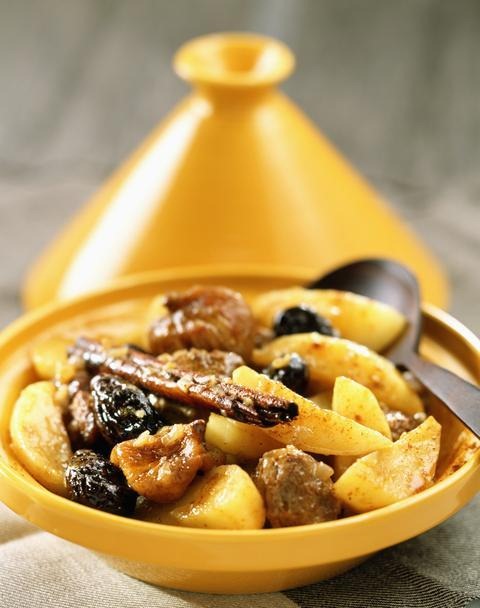 Au Maroc, le terme “tajine” désigne à la fois le ragout et le récipient en terre cuite dans lequel on le fait mijoter.