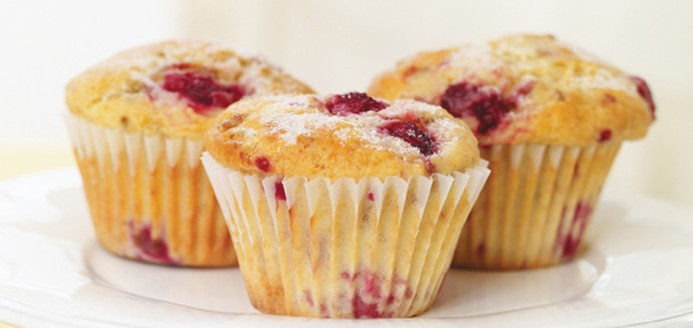 Ingrédients pour 10 muffins : 20 g de framboises – 2 oeufs – 12,5 cl de lait – un peu de beurre pour les moules – 200g de chocolat blanc –230 g de farine – 1 sachet de levure chimique –120 g de sucre – 8 cl d’huile d’arachide – 1 pincée de sel.