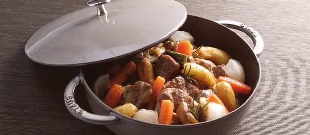 Ingrédients pour 6 personnes : 1,2 d’échine de porc coupée en cubes – 10 cl de vin blanc – 15 cl de fond de veau – 1 c. à s. de miel – 1 c. à c. de farine – 20 g de beurre – 1 c. à c. de curry – 20 cl d’huile d’olive – 1 botte de carotte fane – 2 branches de cèleri – 500 g de pomme de terre.