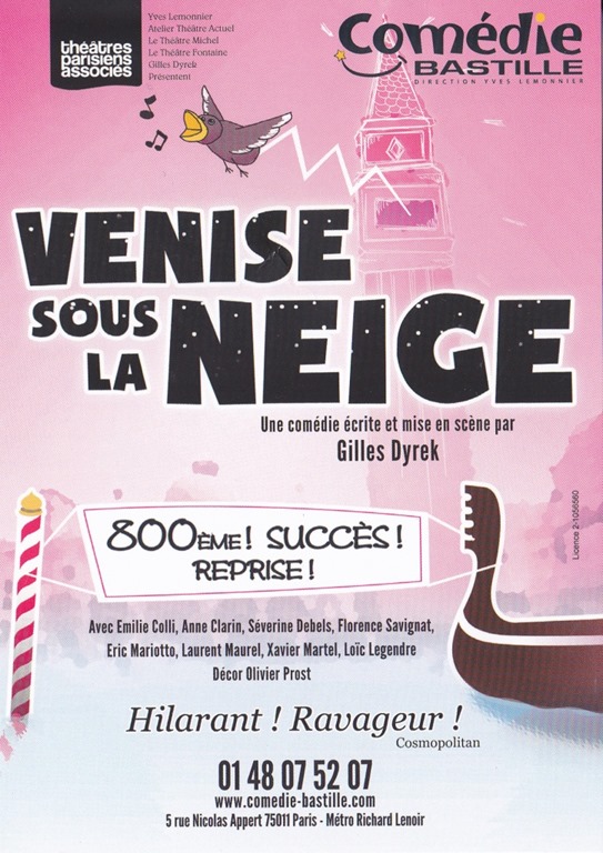 Donc aujourd’hui focus sur “Venise sous la neige” qui est repris à la Comédie Bastille après déjà 800 représentations.