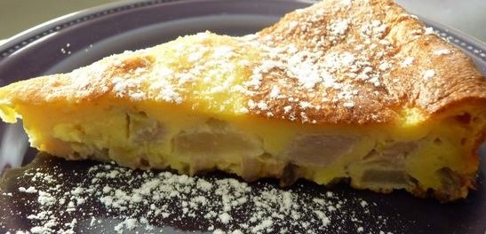 4 poires – 30 g de beurre – 4 oeufs – 80 g de sucre – 70 g de farine tamisée –1 pincée de sel – 35 cl de lait.
