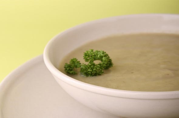 Ingrédients pour 4 personnes : 400 g de cœurs d’artichauts (en bocal ou surgelés) – 600 g de pommes de terre – 1 oignon – 1 gousse d’ail – 75 cl de bouillon de légumes – 1 cuil. à soupe d’huile d’olive – 2 clous de girofle – 2 branches de persil plat – sel, poivre du moulin.