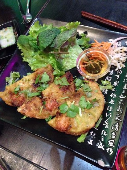 La cuisine proposée dans ce resto est celle du sud du Vietnam, elle est très épicée (dans le sens pleine de saveurs !!)…vraiment une excellente découverte, pour le dessert nous avons choisi de partager le flan à la banane mais version revisité avec du croustillant et du moelleux (dixit le chef). Ajouté à cela un thé au jasmin et une addition de 26 euros par personne.