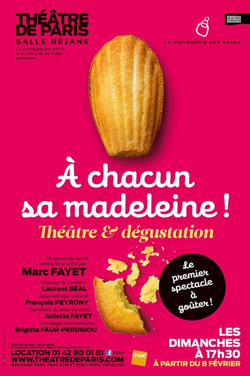 Impossible de ne pas vous parler du spectacle “A chacun sa madeleine” puisque la pâtisserie est le personnage principal.