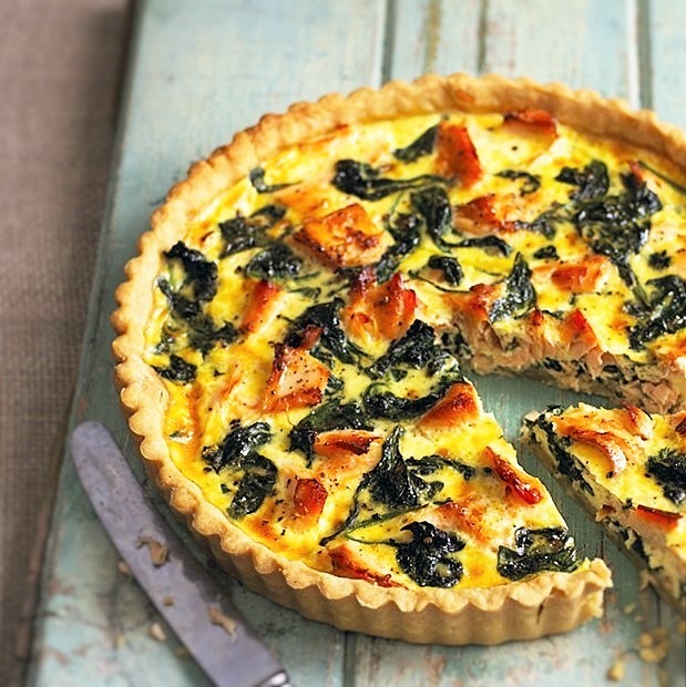 Ingrédients pour 6 personnes : 120 g de jambon blanc – 450 d d’épinards hachés – 2 gousses d’ail – 3 oeufs – 175 g de gruyère – 50 g de beurre – 17 cl de crème fraîche – 1 pâte brisée – Noix de muscade – Sel et poivre.