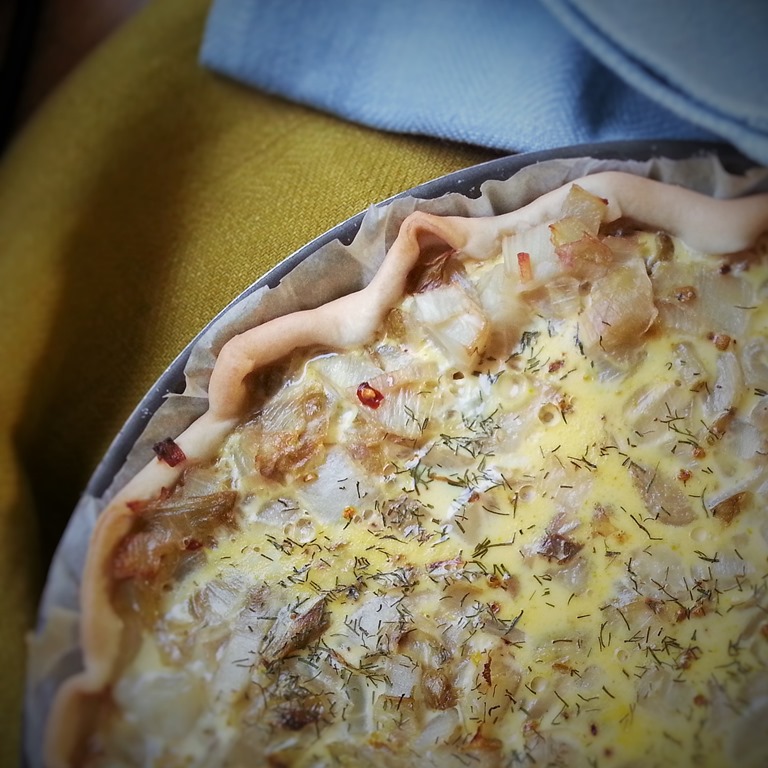Ingrédients pour 6 personnes : 1 pâte brisée – 150 g de truite fumée – 5 endives – 2 citrons – 2 échalotes – 20 cl de crème liquide- Curry – 1 c. à s. d’aneth ciselée – 15 g de beurre.