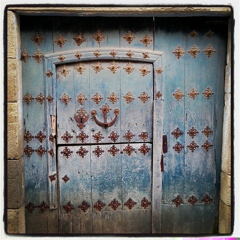 Avant dernière étape ! On gagne un jour sur nos prévisions. L’Espagne est beaucoup plus plate que je pensais, enfin du moins la partie que je viens de traverser… J’aime ce début de Camino Frances, on traverse de jolies bourgades, et elles sont assez proches les unes de l’autre. Ça donne un vrai rythme, on avale les kilomètres sans s’en rendre compte. Tous les 4 à 5 kilomètres, on peut s’arrêter dans les bars, épiceries et se régaler de ce qui fait envie sur le moment, les tortillas par exemple. Mon jus d’oranges pressé devant moi ce midi a été juste ce qu’il fallait pour me donner le signal de départ pour les derniers kilomètres…et ça ne coûte pas un bras comme en France. J’ai essayé de ne pas penser que ça allait se terminer demain…profiter encore de ces heures tranquilles, paisibles où l’on croise et recroise nos compagnons de route de ces derniers jours. J’ai cru un moment que je ne verrais pas mon américain aujourd’hui mais il m’attendait sur un banc pour faire la dernière heure avec moi. Radio Chemin lui avait dit que j’étais juste un peu derrière lui. On a pu reprendre la conversation là où on l’avait laissé la veille… Ses attentions me manqueront sans aucun doute. Estella, la ville étape du jour est très prisée par les pèlerins, à juste titre d’ailleurs, elle est magnifique. J’ai failli coucher dehors, je n’ai trouvé qu’un lit à l’auberge de jeunesse…où il n’y a que des quinquas comme moi…voir plus. Cette halte vaut qu’on s’y arrête, avec mes chouchous rencontrés à Pampelune, on teste les bars et les tapas depuis qu’on s’est trouvé. Y’a pas de hasard dans les rencontres moi je dis. Bref, ce soir n’a pas dérogé à la règle, on a fait ce qu’il fallait pour approfondir nos connaissances… Un 15 ème jour où l’Espagne s’est faite aimer d’une jolie façon. La photo du jour : une porte parmi tant d’autres, elles sont toutes plus belles les unes que les autres dans les traversées des villages. J’aurai pu en choisir une autre mais celle-ci, abimée par le temps m’a touchée.