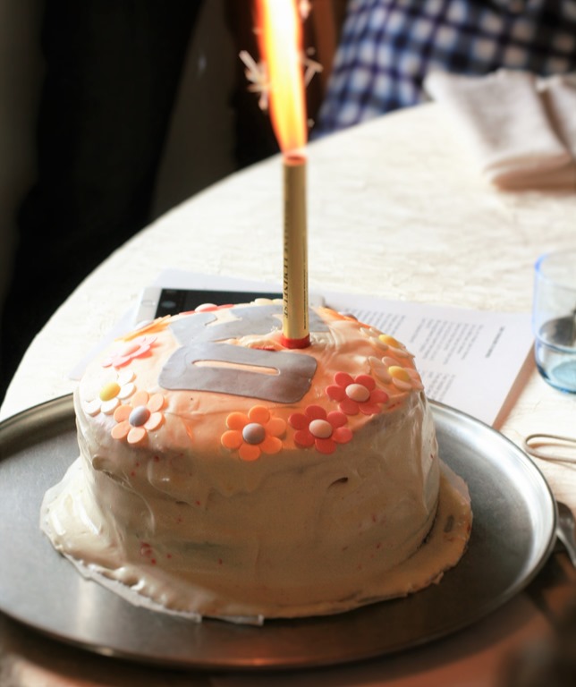 Avec une spatule, recouvrez le gâteau d’une fine couche de crème et placez au frigo une nuit.