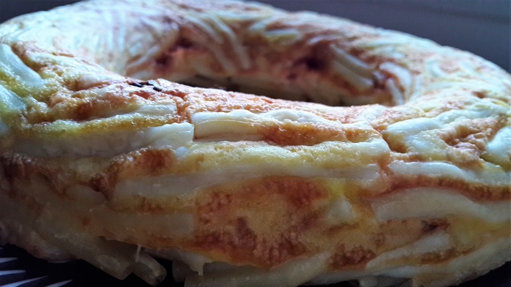 J’ai fait ce gâteau dans un moule à savarin pour le côté spectaculaire mais si vous avez un moule à Kouglof c’est aussi original. Pour cette recette j’ai cuit les pâtes 3 minutes supplémentaires par rapport à la cuisson al dente (elles doivent être fondantes).