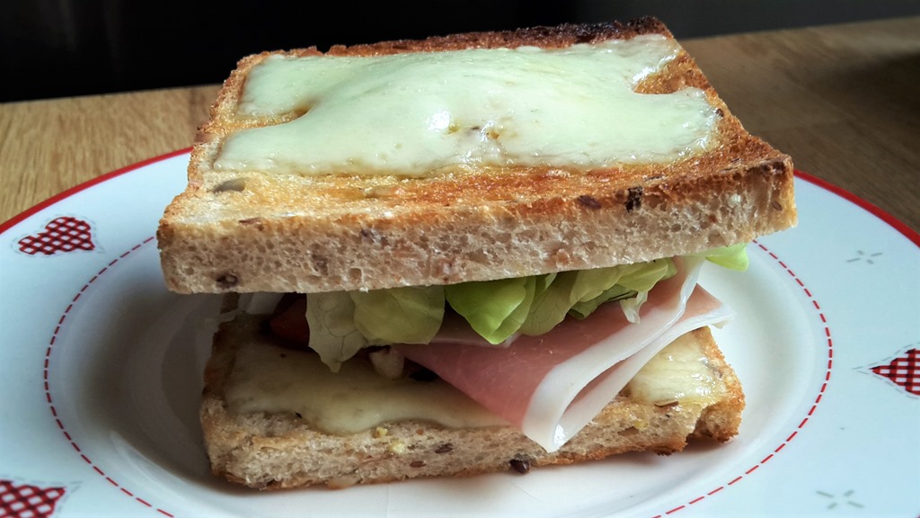 Suite de notre périple italien avec cette version italienne du croque monsieur. Le fontina est un fromage italien fondant qui se trouve surtout dans les épiceries italiennes donc vous pouvez le remplacer par du cantal et pour la roquette qui a un goût assez particulier elle peut aussi être remplacer par de la laitue, c’est pour ajouter un peu de fraicheur à l’ensemble.