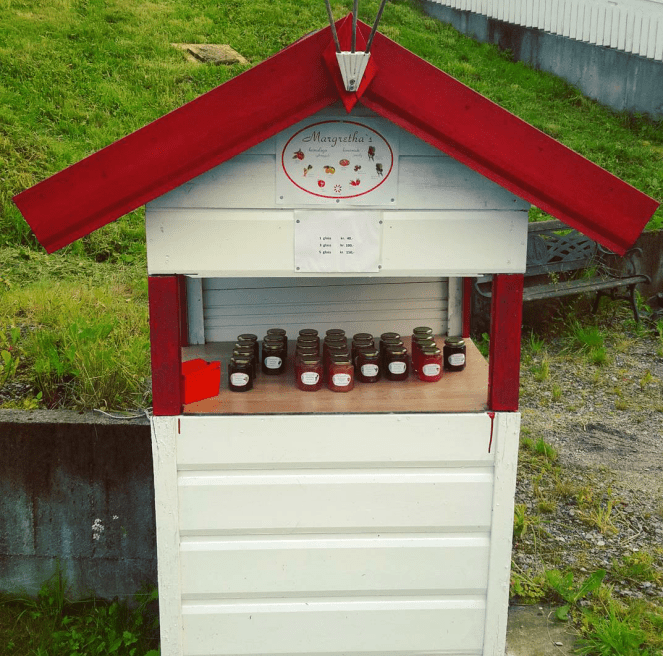 Cela nous a permis de découvrir de jolies stands devant quelques maisons , le concept est simple, des confitures ou fruits à disposition avec un  prix , on se sert et dépose l argent dans la caisse (autant dire impossible de l’importer en France)….pendant que je termine ce post,  notre premier maquereau (et d une belle taille ! )  vient d être sorti de l’eau…