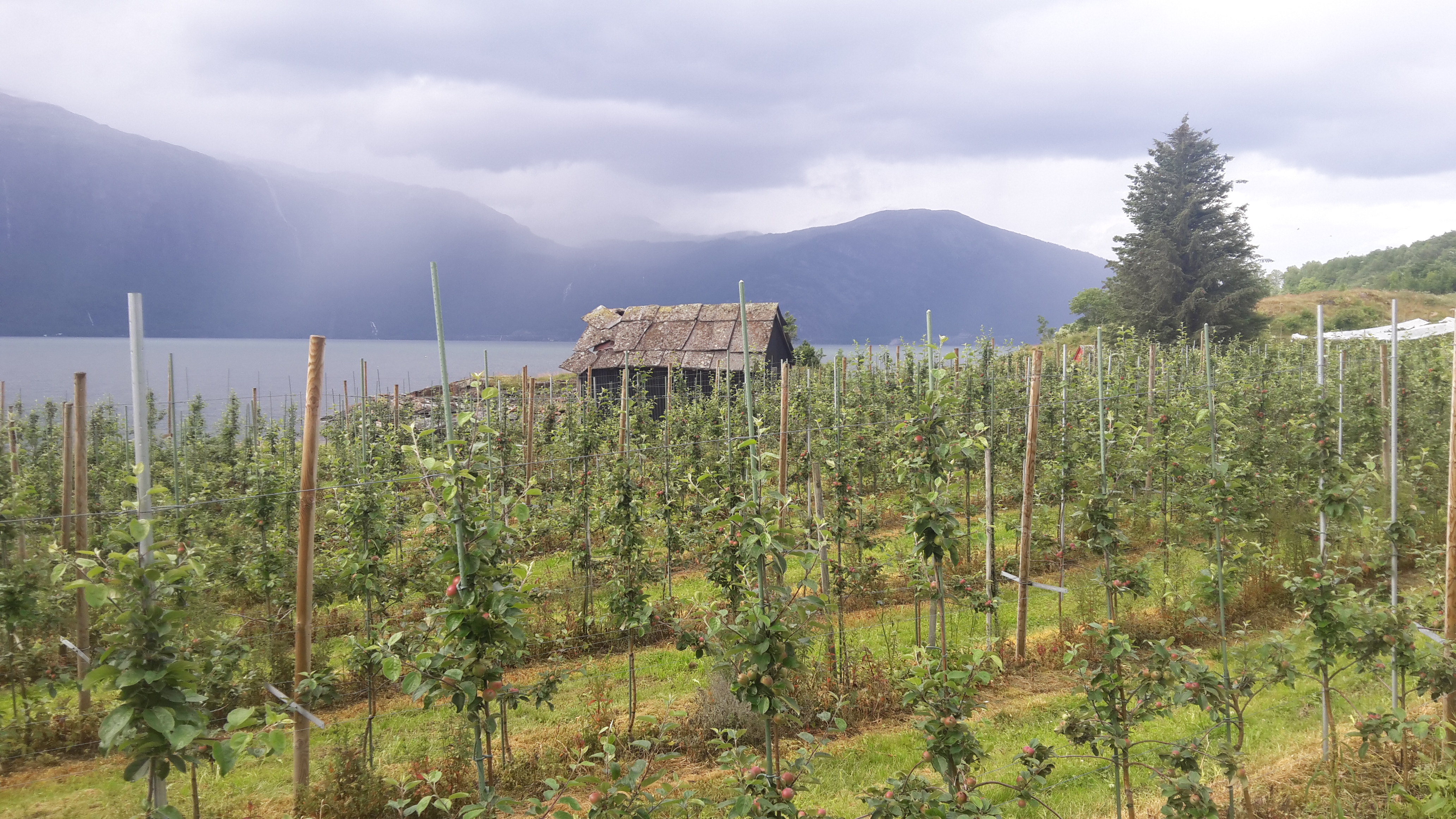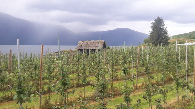 Pour terminer cette journée c est dans les environs  d’Utne au coeur d une vallée arboricole que nous avons installé notre campement du soir, et profitant d’une éclaircie ce fut la randonnée du jour entre les pommiers et les cerisiers.