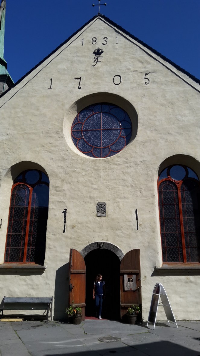 La cathédrale de Bergen plus austère en pierre se la joue plus discrète juste à côté du port et dans un quartier où vous trouverez des bars plus underground loin des touristes.