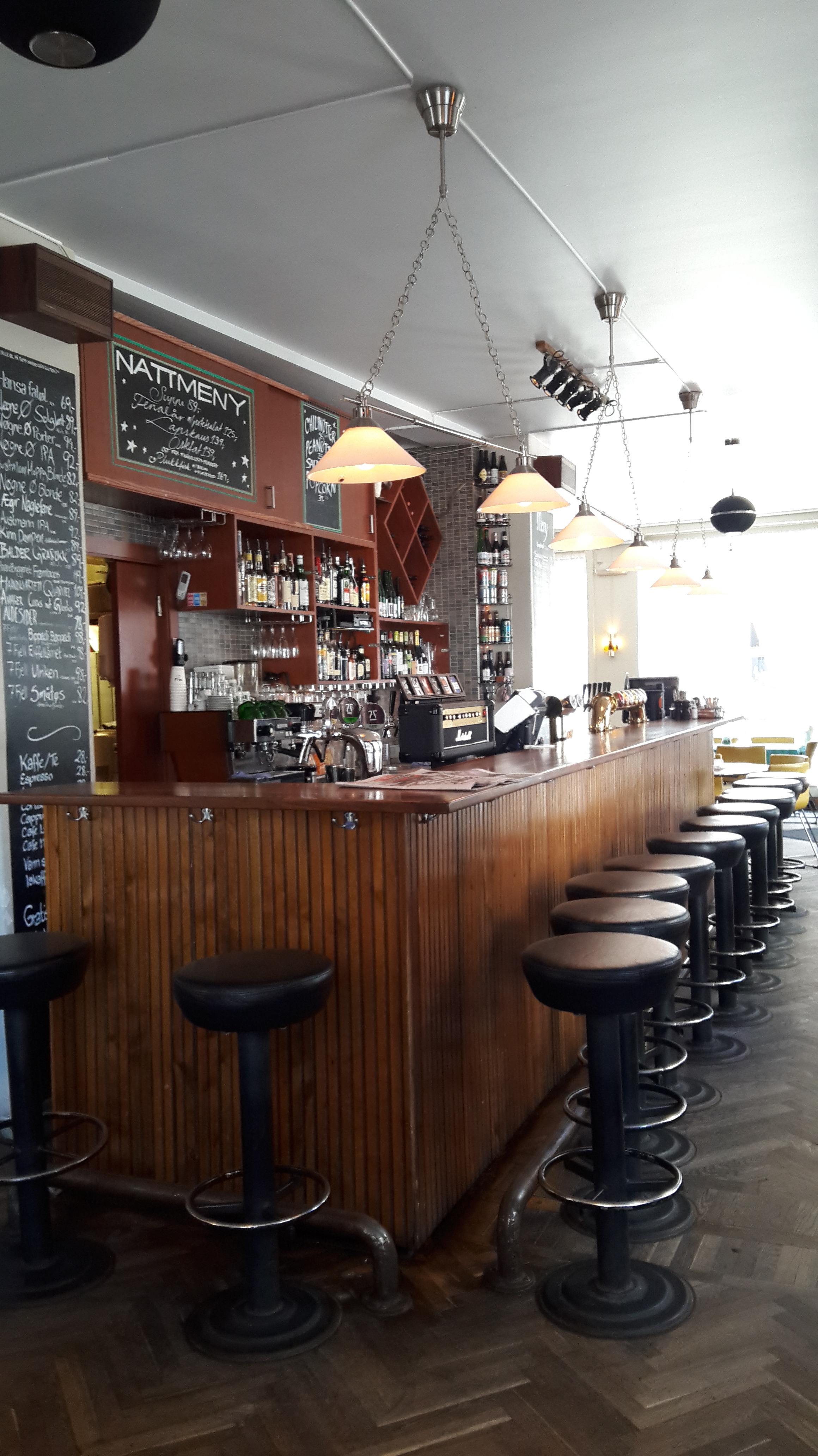 Nous aussi on a suivi les conseils du lonely, et d’un blog, et on est allées au pingvinen notre premier soir à Bergen, qui était, plus largement, notre premier soir en Norvège aussi. Et on a pu constater que commander un plat en VO, même sous titré en anglais, c’était pas évident, j’ai eu de la chance… pas ma comparse!