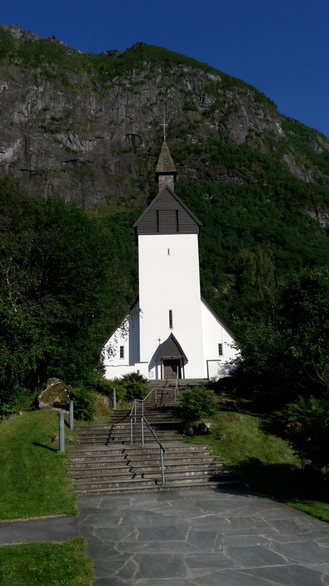 Comme nous avons du temps, c’est baignade pour les courageux (eau transparente et pure à 17 degrés) , farniente sur la plage, et pour moi « balade en ville ». Voici donc à quoi ressemble une petite ville au bord d’un fjord