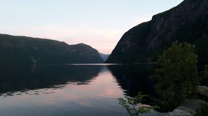 En toute modestie je vous annonce mon premier poisson juste après le dîner, un maquereau d’une taille honorable mais pas assez gros pour le garder..ce soir nous nous endormirons face à un ciel légèrement rose au creux du fjord. Belle nuit à tous…