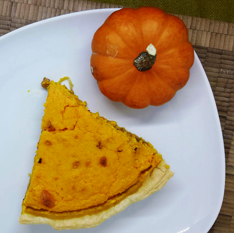 Ingrédients pour 6 personnes : 600 g de potimarron – 25 cl de crème fraîche épaisse – 200 g de lardons fumés – 1 rouleau de pâte feuilletée – 1 gros oignon – 2 oeufs – sel, poivre.