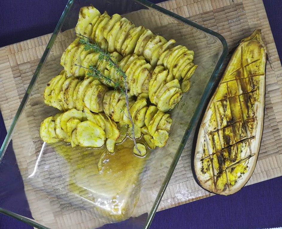 La semaine débute sous le signe du veggie avec ce légume qui fut longtemps oublié puis de nouveau à la mode et qui maintenant vit son petit bonhomme de chemin. La partie la plus difficile de la recette, c’est l’épluchage donc il faut bien les choisir, la bonne nouvelle c’est qu’on en trouve maintenant partout et même en bio…Sur la photo une aubergine s’est glissée discrètement car dans lutte anti-gaspi pas question de la laisser se morfondre dans mon bac à légumes. Donc mise au four avec les topinambours mais par contre cuisson plus longue environ 45 minutes.