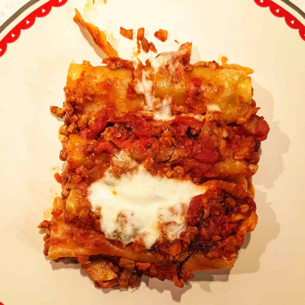 Le plus long dans cette recette ? farcir les cannellonis, moi j’ai pris l’option à la petite cuillère cela fonctionne très bien, la sauce étant un peu trop liquide pour une poche à douille… A la fin de la cuisson le petit coup de grill vous donnera une mozzarella croustillante , indispensable !!! En accompagnement une salade de jeunes pousses et un Lambrusco (vin italien légèrement pétillant) et c’est comme un p’tit morceaux d’Italie à la maison…
