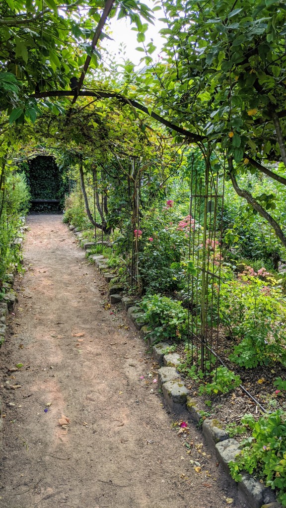 Ensuite quelques marches en pierre pour découvrir, la roseraie qui était en fin de saison, puis le jardin Bouquetier (le jardin des fleurs qui porte ce nom car aux XVIIème et XVIIIème siècles, les jardiniers vendaient leurs fleurs aux bouquetières, seules personnes ayant le droit de composer les bouquets et de les proposer à la vente), le jardin potager, le jardin médicinal et la terrasse qui surplombe le jardin du presbytère et qui permet après avoir encore visité 3 salles d’expositions à l’étage de redescendre vers la Boutique. A l’accueil vous croiserez peut-être Mme Pigeard qui continue à animer l’endroit et habite également sur place. Nous avons eu la chance de discuter avec elle, elle nous a raconté sa passion pour cet endroit et pour encore plus nous le faire partager , nous avons eu droit à une visite privée de sa maison, incroyable endroit ou les objets racontent tous une histoire, nous étions complètement sous le charme de cette dame, très gentille et passionnée, une vraie belle rencontre…