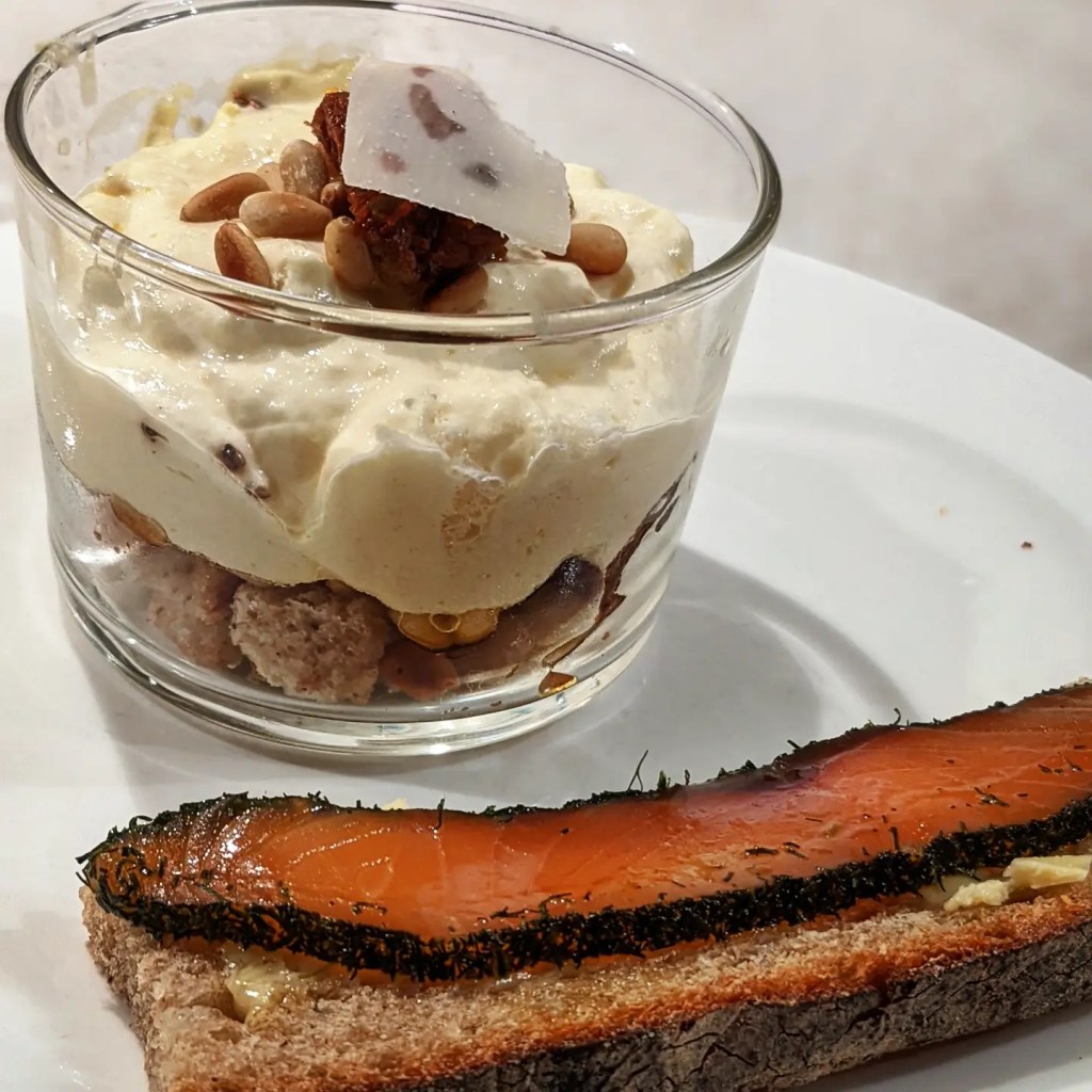 Je vous avais promis une recette par jour jusqu’à Noël, pari tenu même si cette publication est assez tardive. Plutôt originale cette recette de tiramisu salée est une belle découverte, vous pouvez la préparer à l’avance et elle sera une entrée très légère pour un repas de fête…Pour faire une belle assiette j’ai ajouté à côté un petite tranche de pain de campagne avec du saumon mariné au citron et aneth, et voilà en quelques minutes une belle assiette de fête…