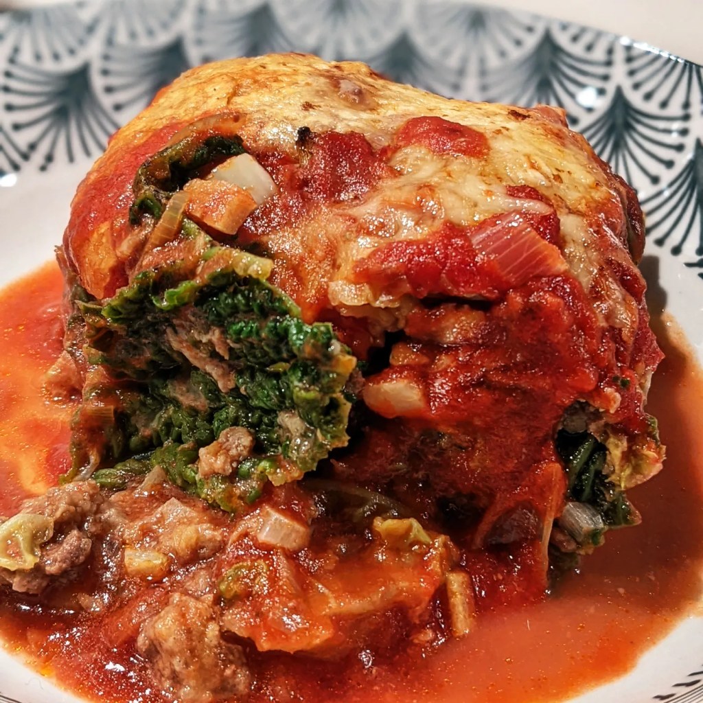 Garnissez les feuilles de chou de farce à la viande, refermez bien chaque feuille, déposez-les dans un plat à gratin beurré. Couvrez de la comportée de tomates et enfournez pour 15 minutes. Ajoutez alors le gruyère râpé et poursuivez la cuisson pendant 10 minutes jusqu’à ce que le fromage soit bien gratiné.