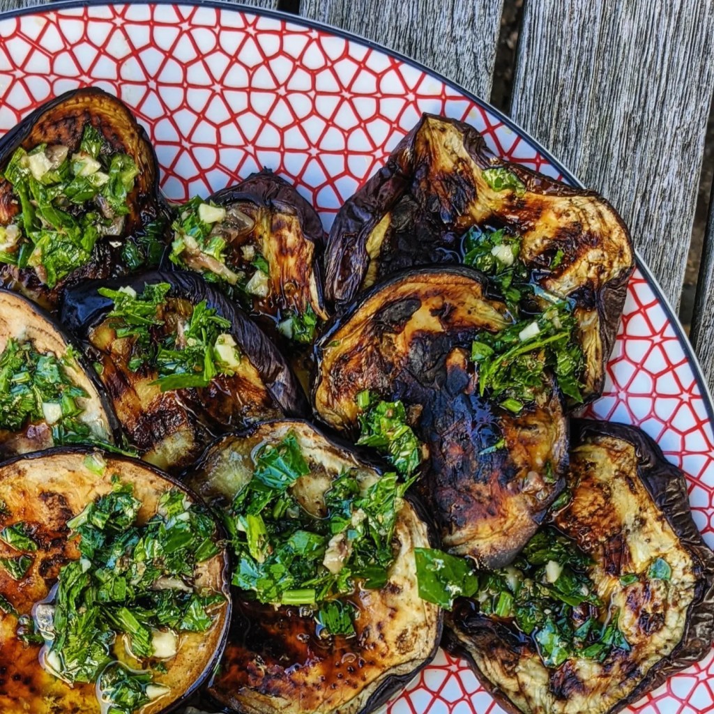 Après un été 2021 ou le barbecue était discret sur la terrasse, il est de nouveau en vedette , cela évite de faire monter en cuisine la température de quelques degrés. Aujourd’hui un classique de la cuisine « barbeuc », les aubergines grillées, jusque là rien de nouveau mais côté sauce c’est autre chose 🙂