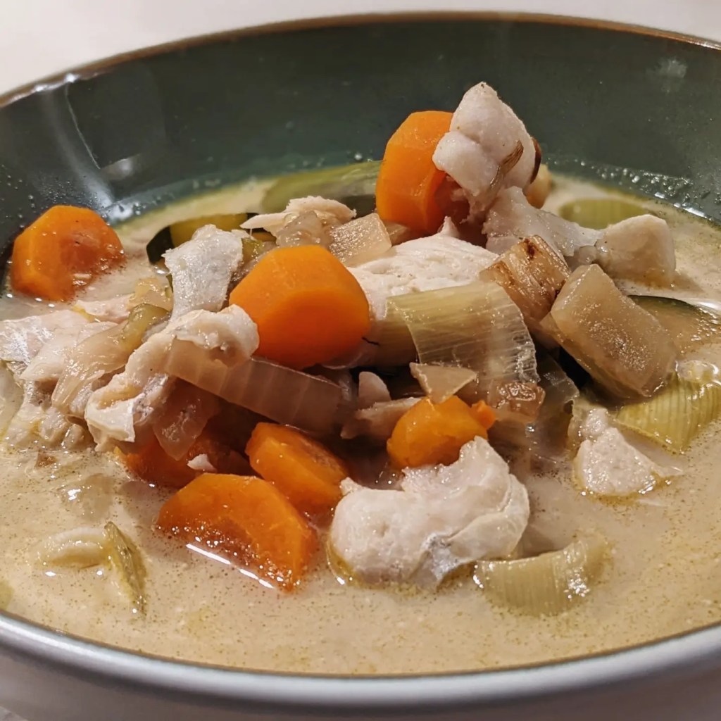 Entre soupe et plat cette recette s’accompagne de pommes de terre vapeur (que l’on peut aussi directement servir dans le Waterzooi) ou alors de céréales comme le quinoa pour un mélange plus « exotique ».