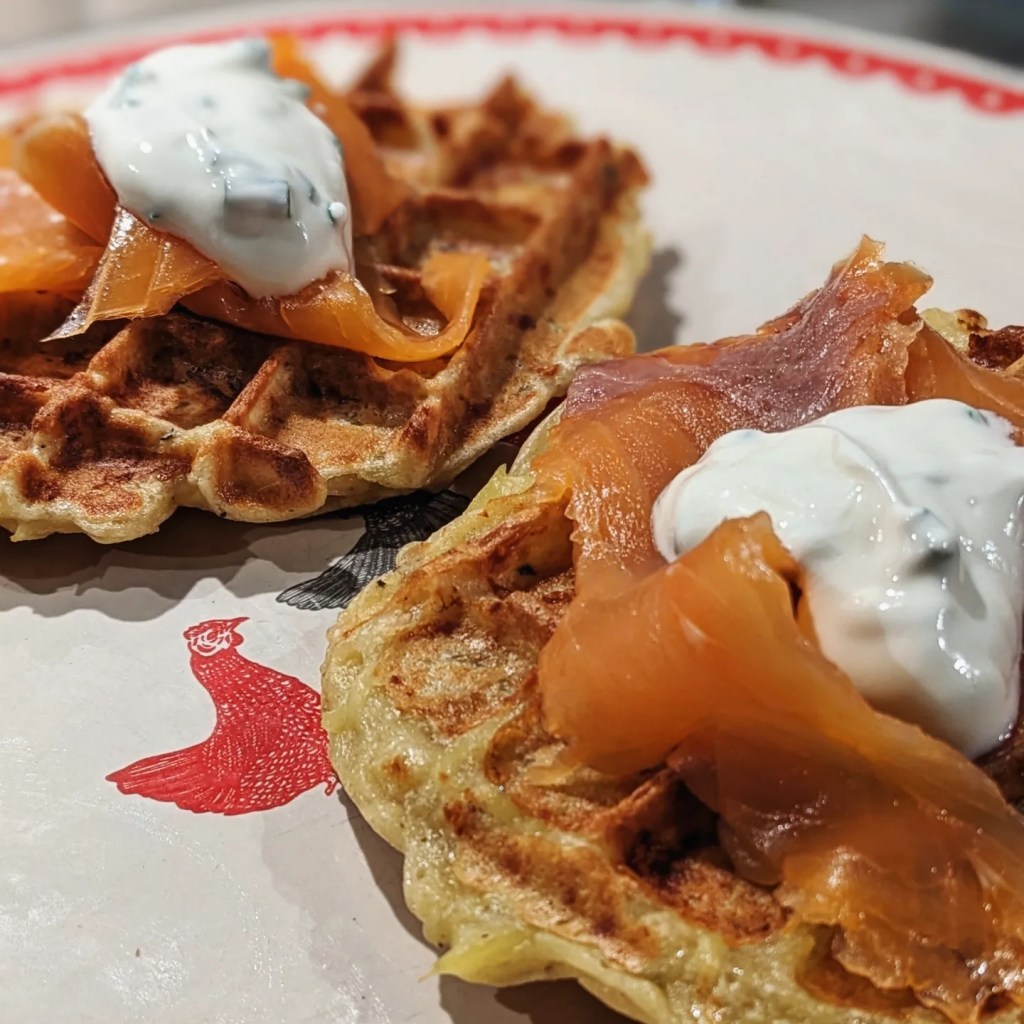 Ah les gaufres avec de la chantilly ou du chocolat chaud vous aimez ? Eh bien ce soir je vous propose une version salée avec une pâte à base de pommes de terre, tout aussi gourmand à déguster en entrée avec de la truite et une petite sauce au fromage blanc….Vous pouvez même les préparer à l’avance et les réchauffer à la dernière minute pour ajouter un peu de croquant, c’est délicieux, facile et pas cher, bref un recette à mettre dans vos carnets.