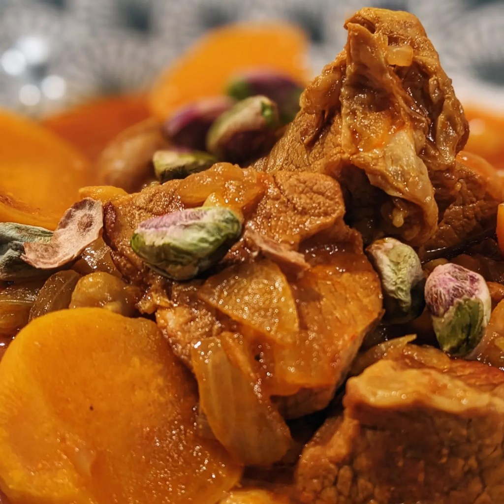 Servez la tajine parsemé de pistaches concassées.