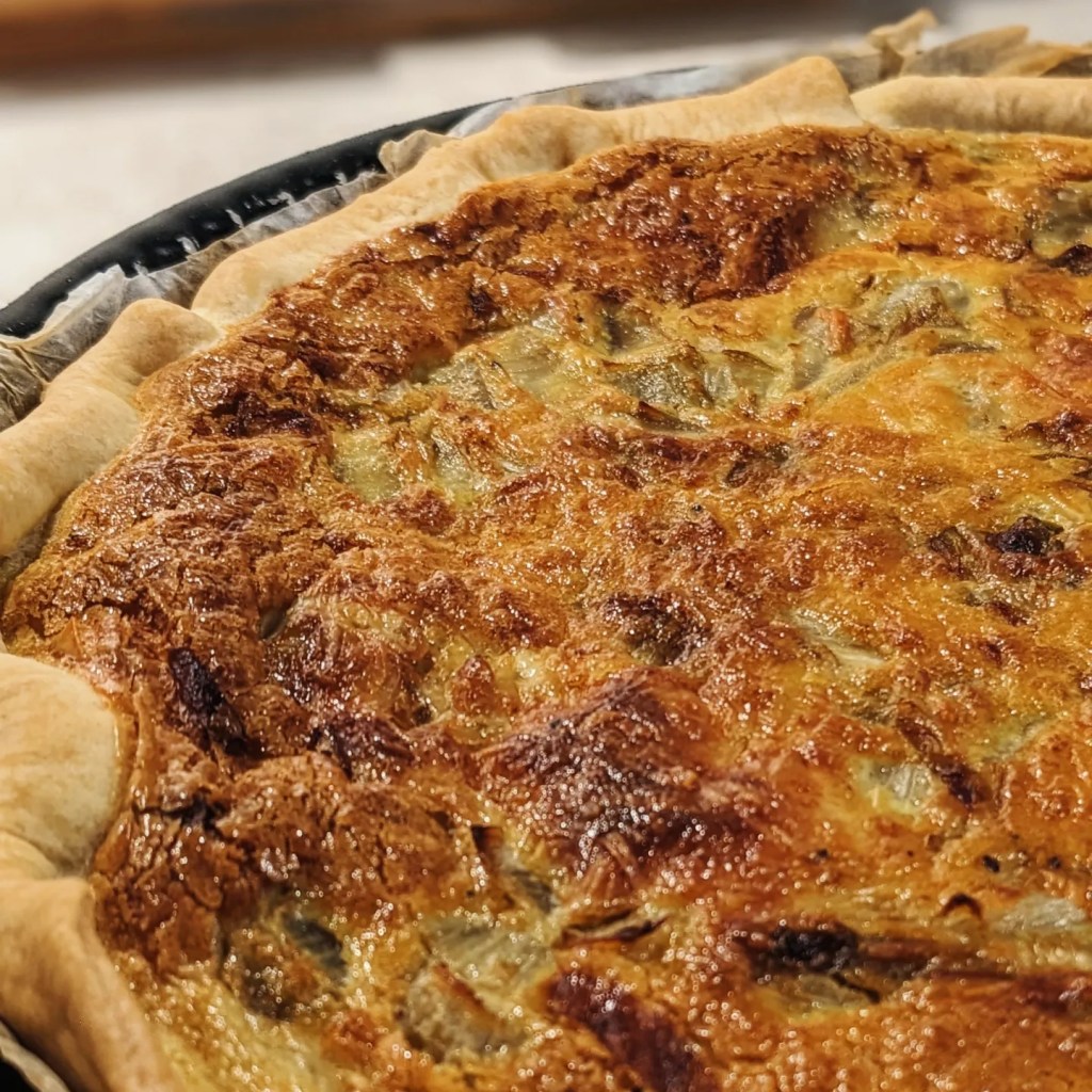 Ingrédients pour 4 personnes : 8 endives – 30 g de beurre – 1 pâte brisée – 4 oeufs – 120 g de crème fraiche – 1 pincée de piment d’Espelette – 120 g de cantal.