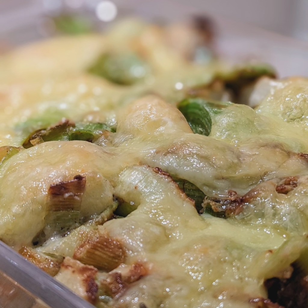 Dans un plat, déposez le quinoa puis les poireaux. Saupoudrez de parmesan et recouvrez de lamelles d’emmental.