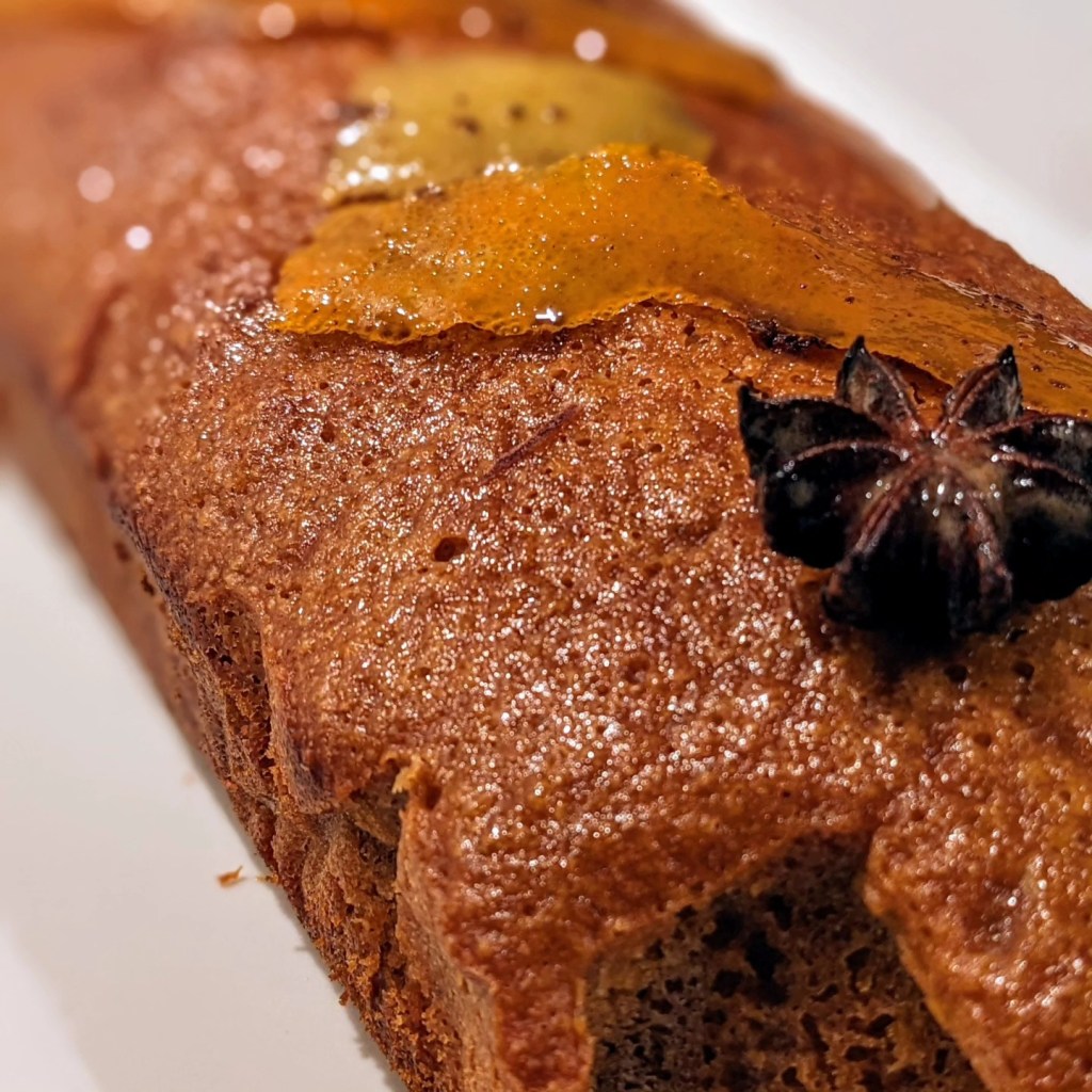 Ingrédients pour un cake environ 20 cm : 150 g d’eau – 40 g de sucre semoule – 150 g de miel – 3 g de mélange 4 épices – 1 zeste de citron jaune – 1 zeste de citron vert – 1 zeste d’orange – 3 étoiles de badiane – 150 g de farine T55 – 5 g de levure – 95 g de beurre – 1 pincée de bicarbonate