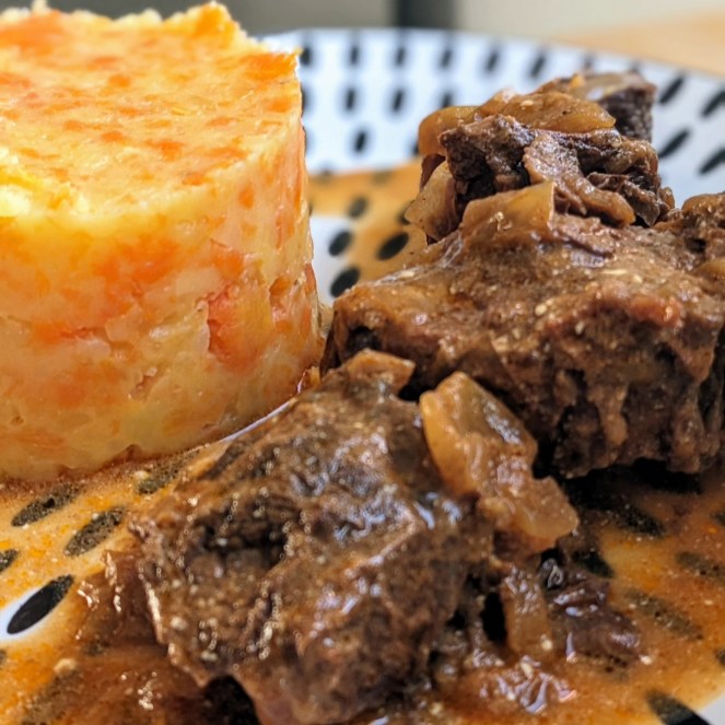 Pour accompagner ce plat j’ai fait une purée pommes de terre – carotte !