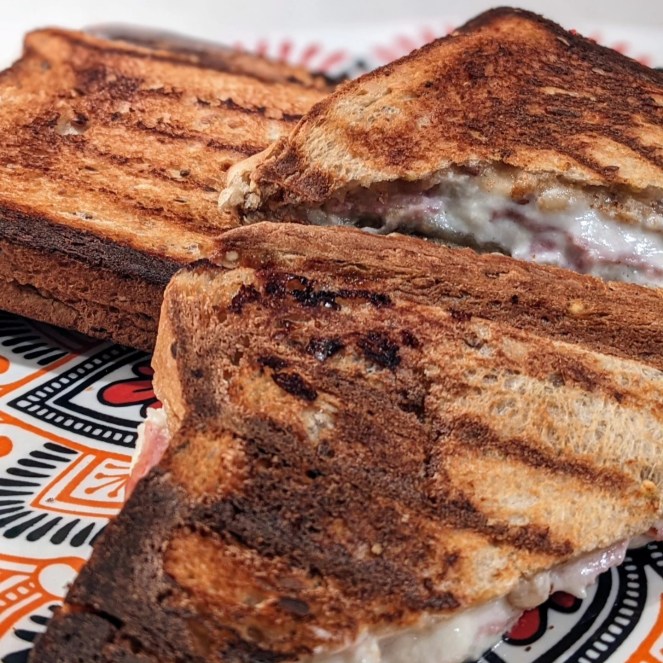 Recouvrez d’une tranche de pain et faites cuire dans un appareil à croque monsieur 5 minutes. Servez aussitôt.